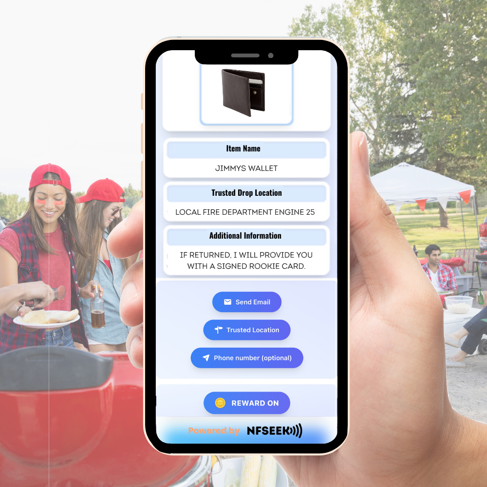 Each keychain is equipped with both a QR code and an NFC chip that connect directly to your custom Retrieval Profile. When someone taps or scans, they’ll see clear instructions to contact you or return your item — no app or account required.
